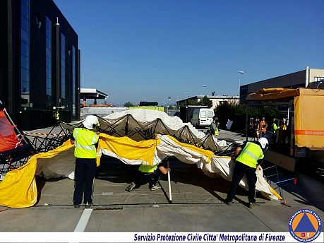 Come da piano del sistema emergenze 'Nbcr' (scenari Nucleari, Biologici, Chimici, Radiologici) la Città Metropolitana di Firenze ha movimentato e montato la tenda di decontaminazione in eventi regionali e nazionali su richiesta della centrale operativa 118.