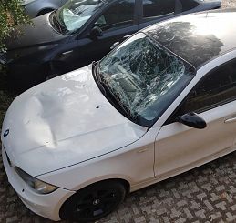 Le due auto in questione sono state entrambe derubate dei pneumatici e messe su mattoni, ma solo una ha anche il parabrezza distrutto e il cofano ammaccato.