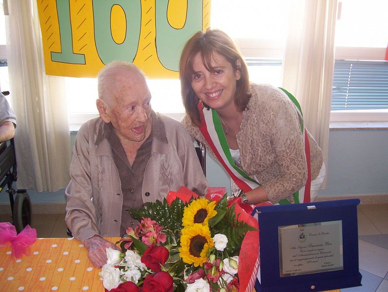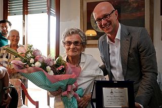 L'amministrazione comunale omaggia le due "giovani" con un mazzo di fiori e una targa ricordo dell'evento