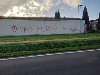 Nella foto, pubblicata sul gruppo Facebook "Sei di Fucecchio se", si legge il messaggio no vax, riportante "Vax=Morte", che campeggia quasi tutto il muro esterno del cimitero.
