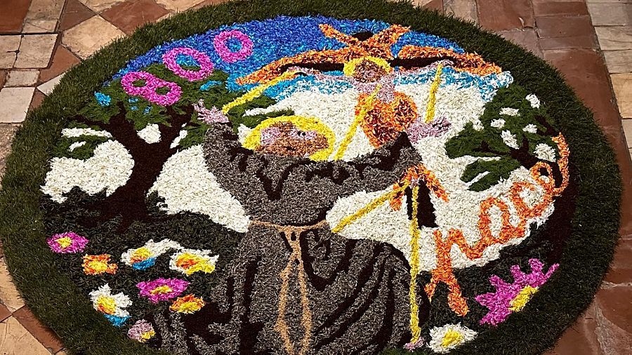 Venerdì 4 ottobre, gli infioratori hanno realizzato un tappeto con petali di fiori freschi, accuratamente preparati nei giorni precedenti, rappresentante San Francesco mentre riceve le stigmate nell'800° anniversario.