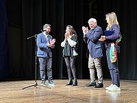 La mattinata si è rivelata un grande successo sia per partecipazione che per intensità, con i ragazzi che hanno dimostrato sensibilità e attenzione verso un tema di grande attualità. Il coinvolgimento delle scuole, in particolare degli studenti della secondaria di primo grado “Montanelli Petrarca”, ha confermato l’importanza di iniziative culturali e formative capaci di parlare alle nuove generazioni e di stimolare una riflessione profonda su diritti, lavoro e sicurezza. Dopo la fine della coinvolgente performance di Ugo De Vita, studenti e studentesse hanno letto una serie di pensieri dedicati a Luana, culmine di una mattinata particolarmente commovente. L'amministrazione comunale ha voluto donare al professor De Vita una targa ricordo per questa mattinata, mentre Emma Marrazzo ha regalato agli studenti dei piccoli pensieri proprio in ricordo della figlia.