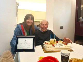 La prima cittadina ha portato una targa al centenario cittadino: "I migliori auguri per questo compleanno speciale a nome della comunità"