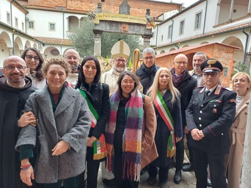 MONTOPOLI VAL D'ARNO — Un appuntamento fisso ormai dal 1992, il presepe di San Romano è stato inaugurato domenica 8 Dicembre nel Chiostro dei Frati Minori. Alla cerimonia, insieme all'amministrazione comunale erano presenti il presidente della regione Toscana Eugenio Giani e il vescovo della diocesi di San Miniato Giovanni Paccosi.