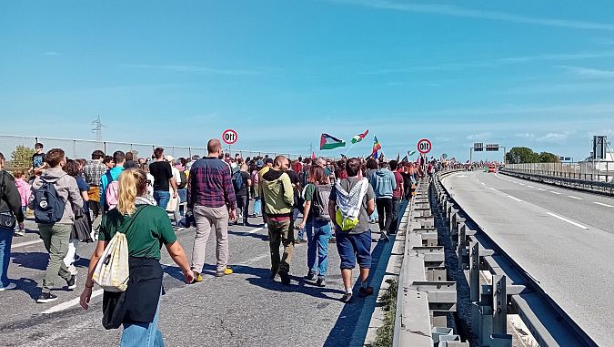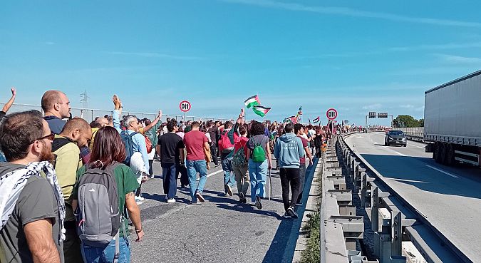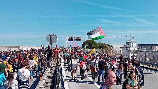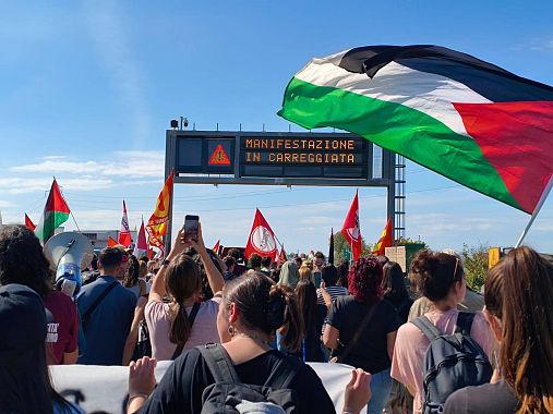 La manifestazione, partita da piazza XX Settembre, aveva come obiettivo dichiarato quello di "bloccare tutto" in segno di solidarietà con Gaza e contro l’attacco alla Global Sumud Flotilla. Il messaggio ribadito più volte dagli organizzatori è stato quello di una mobilitazione radicale per "fermare la macchina della guerra che parte dai nostri territori".