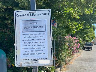 "Grazie ai nostri amministratori per regalarci questa piazza principale di Montecalvoli con erba alta, oleandri che invadono la strada, buche da tappare, siepi da potare e strisce per stalli inesistenti.”