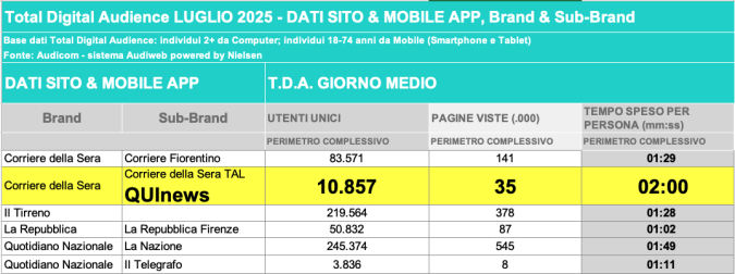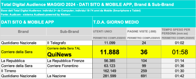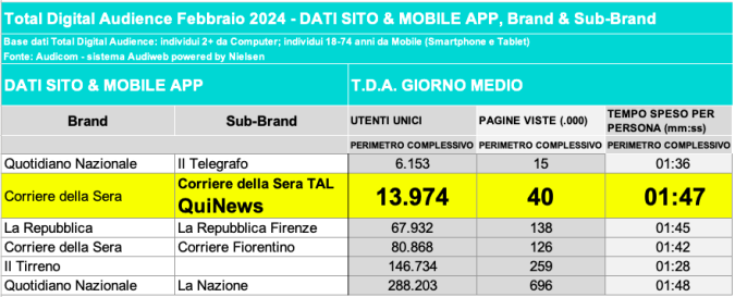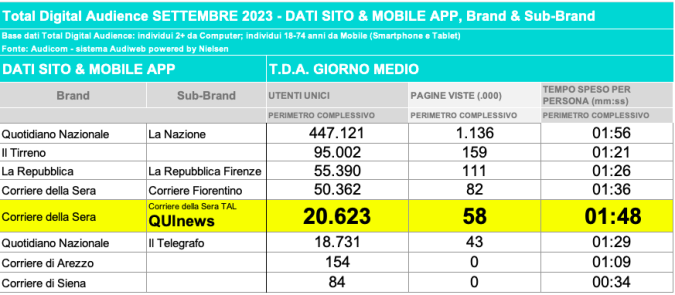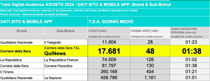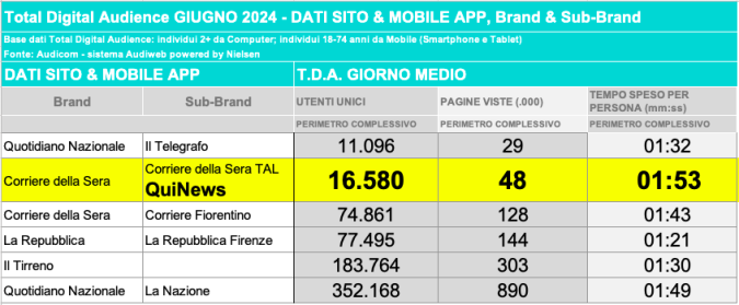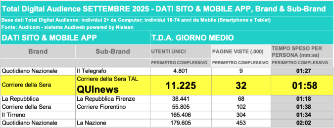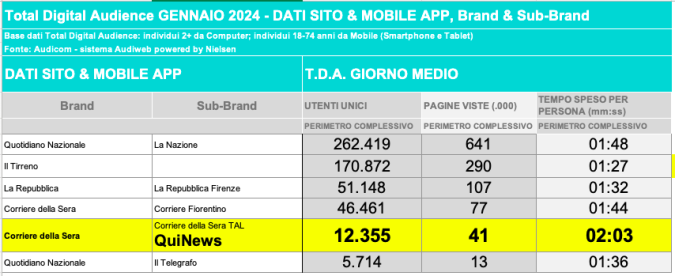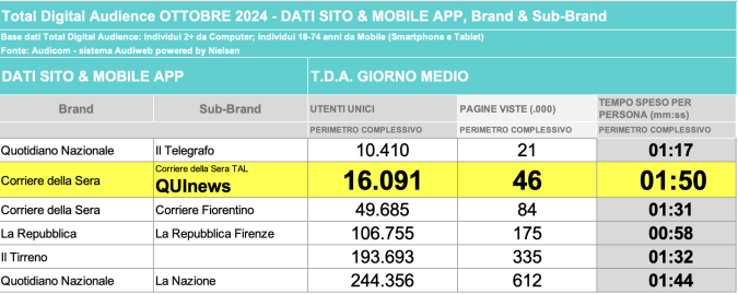 I DATI AUDIWEB DEL MESE DI NOVEMBRE 2020 NON SONO PRESENTI PER ADEGUAMENTO TECNICO DELLA RILEVAZIONE DEL NETWORK QUINEWS COME SUB BRAND DEL CORRIERE DELLA SERA